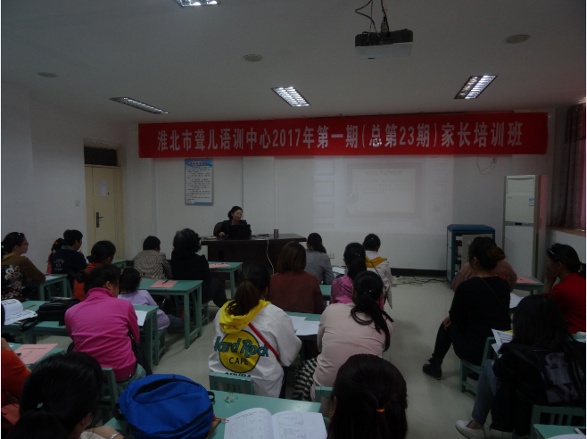 2017年4月28日,淮北市聋儿语训中心在市残疾人综合服务基地四楼多媒体教室举办了2017年第一期家长培训班。